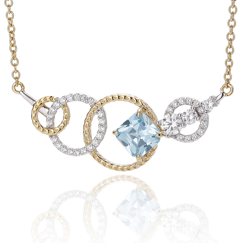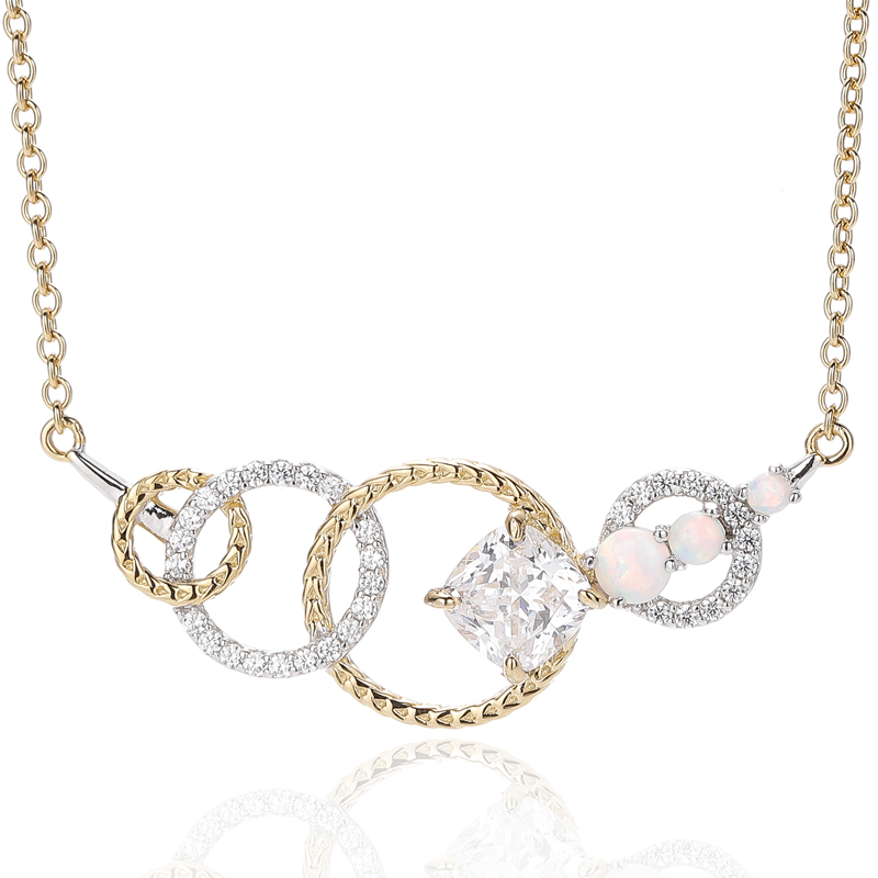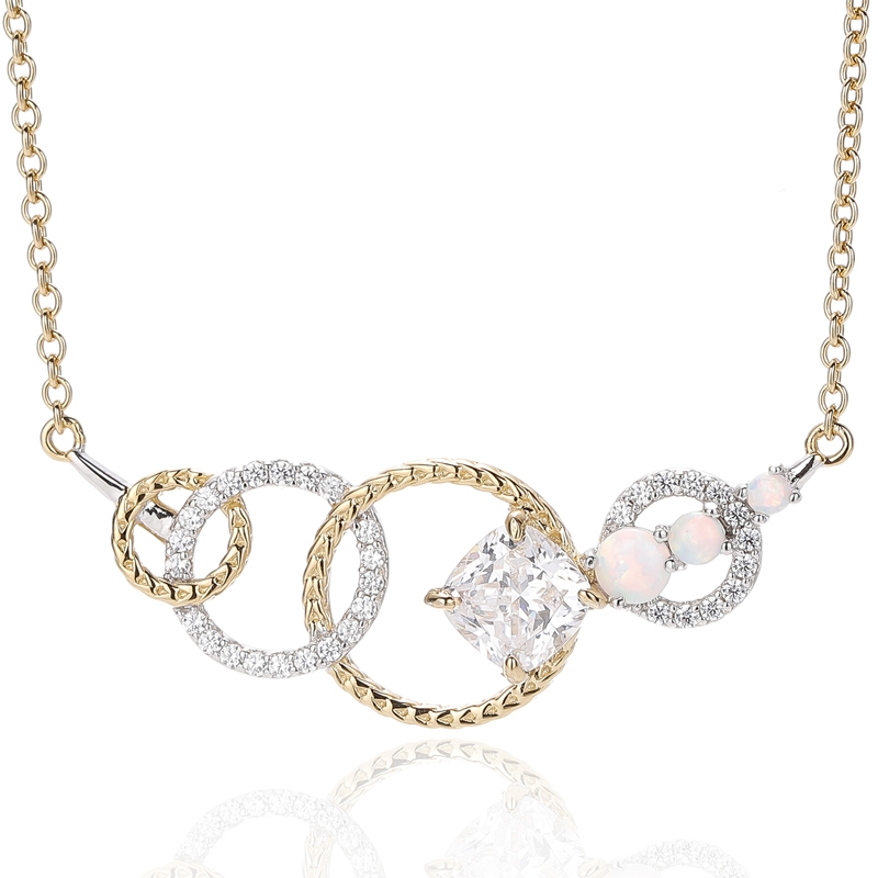 4.66Ciondolo in argento 925 con opale rotondo e zircone cubico bianco a cuscino con placcatura bicolore