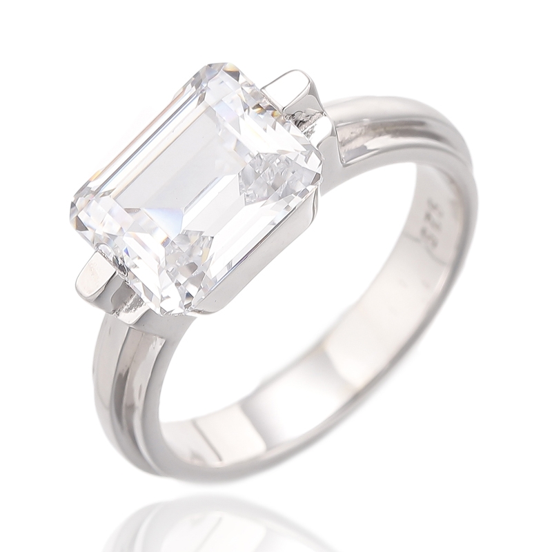 5.40Anello in argento rodiato con zircone cubico grigio taglio smeraldo