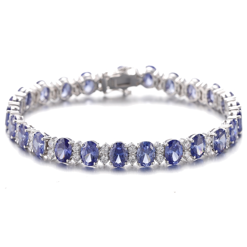 17.60Bracciale in argento rodiato con zirconi cubici bianchi rotondi e arcobaleno di forma ovale