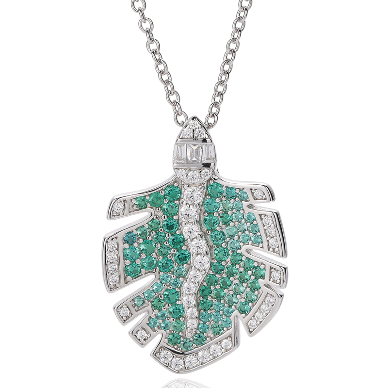 3.71Ciondolo in argento rodiato con zircone cubico bianco nano verde rotondo e affusolato