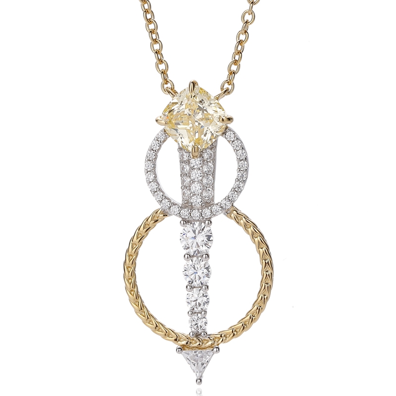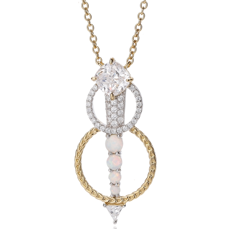 4.81Ciondolo in argento con opale rotondo e zircone cubico bianco a cuscino con placcatura bicolore